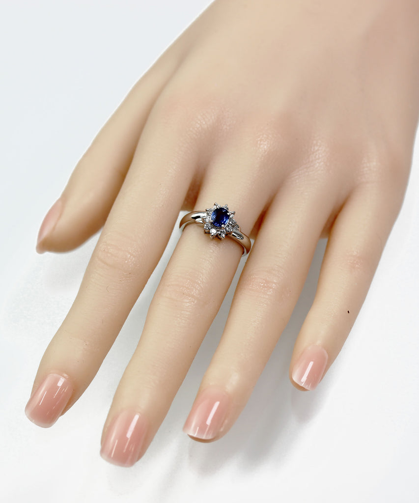 9月だ誕生石のサファイア、ブルー系で涼しげカラーなので、服との組み合わせも簡単です