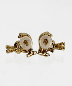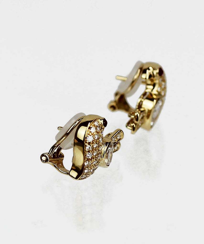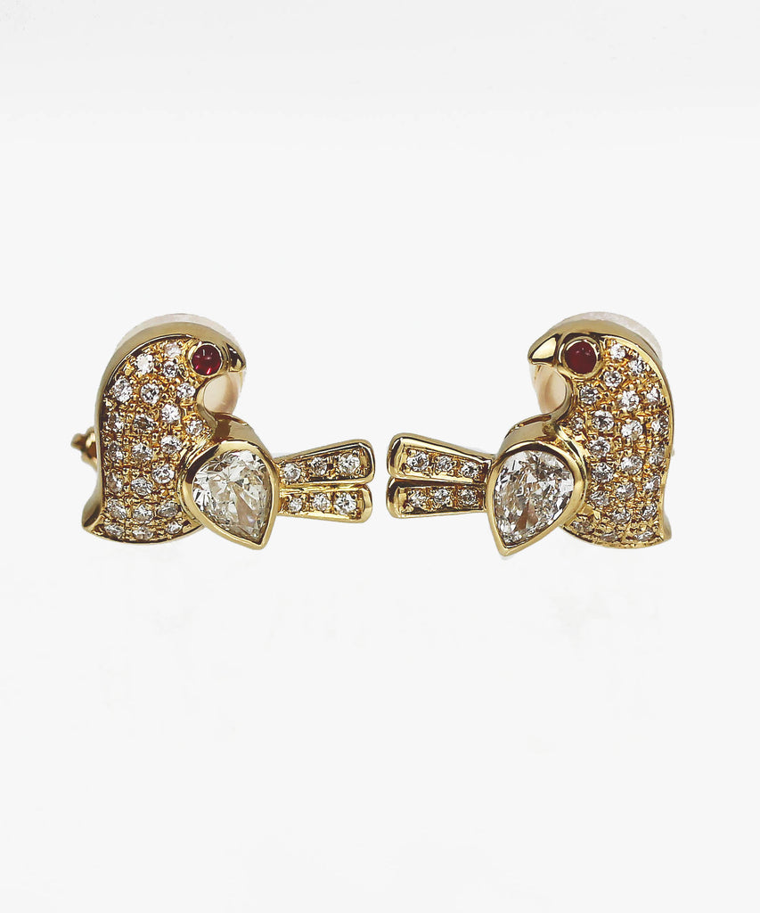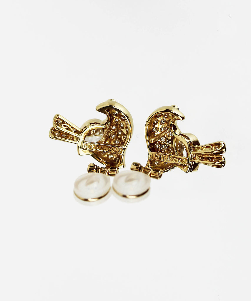 上質なK18素材の輝くピアスに、エレガントなダイヤモンドがトリデザインを彩ります。洗練された美しさを飾ります
