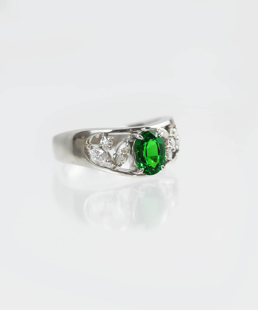 ツァボライトと呼ばれる明るくて綺麗なグリーンガーネットリングです