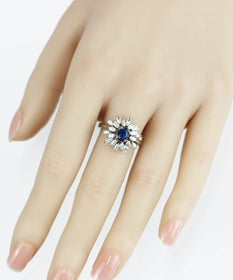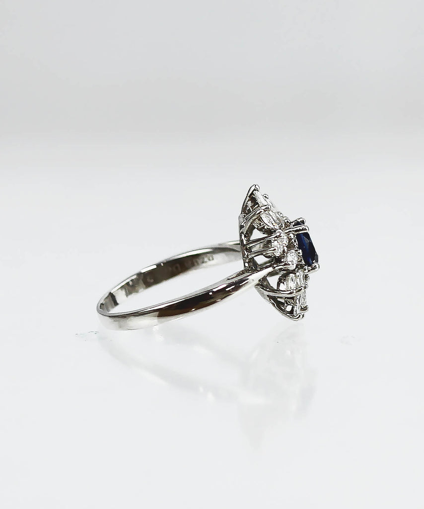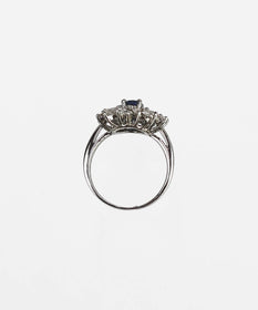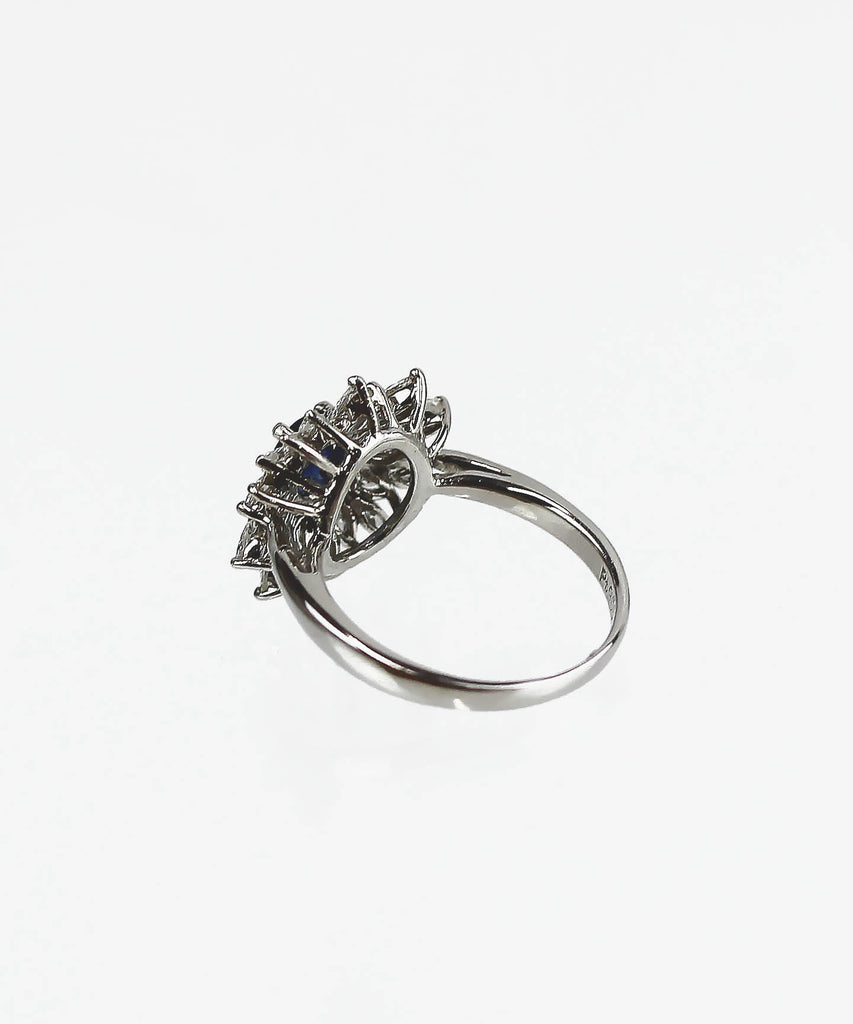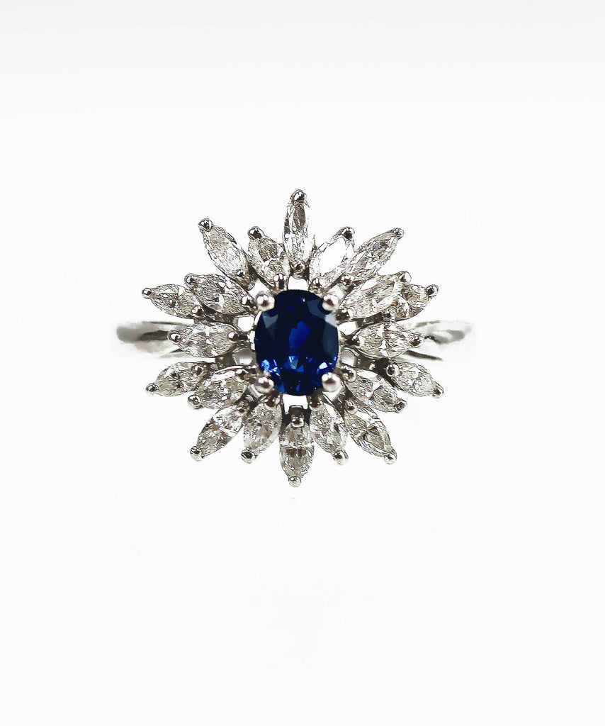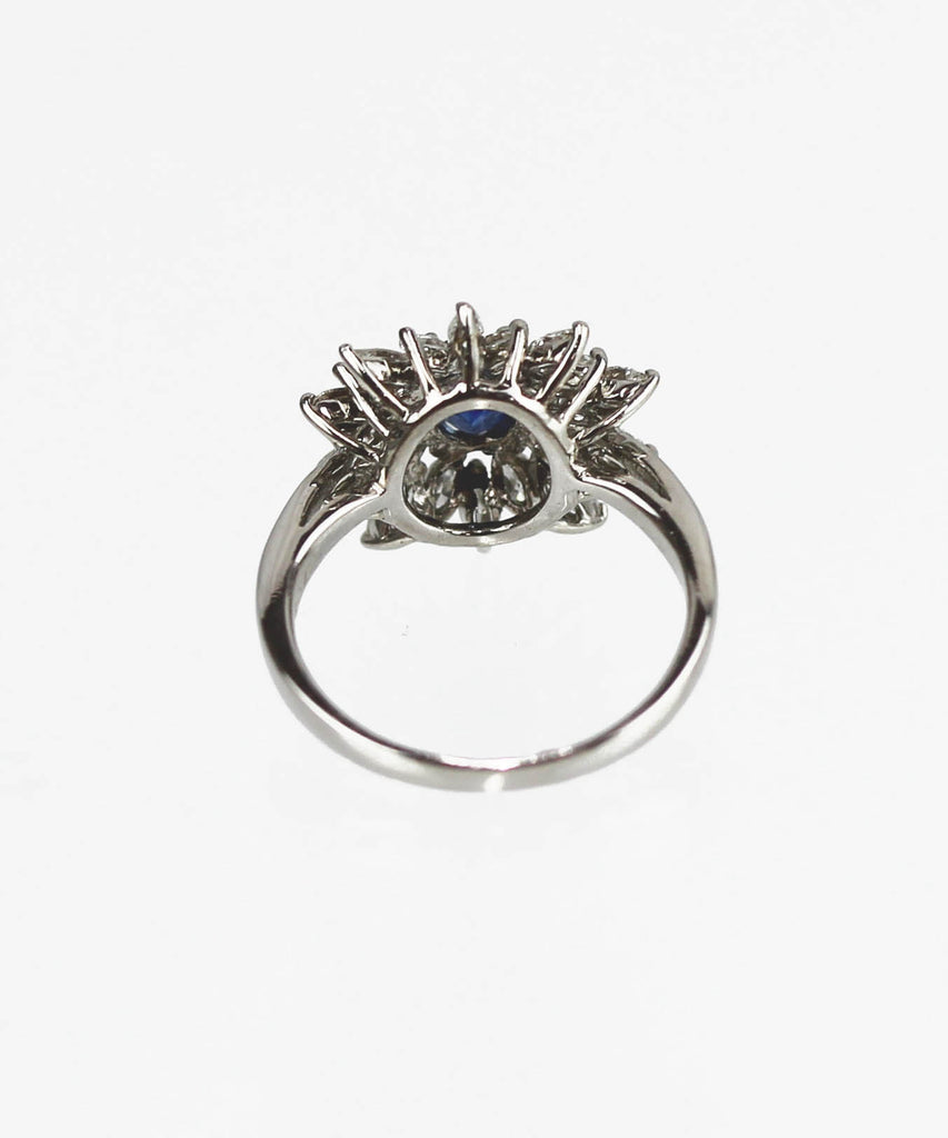 綺麗なブルーサファイヤを上品なデザインのダイヤリング枠に組み合せて、普段使いにもオススメです