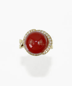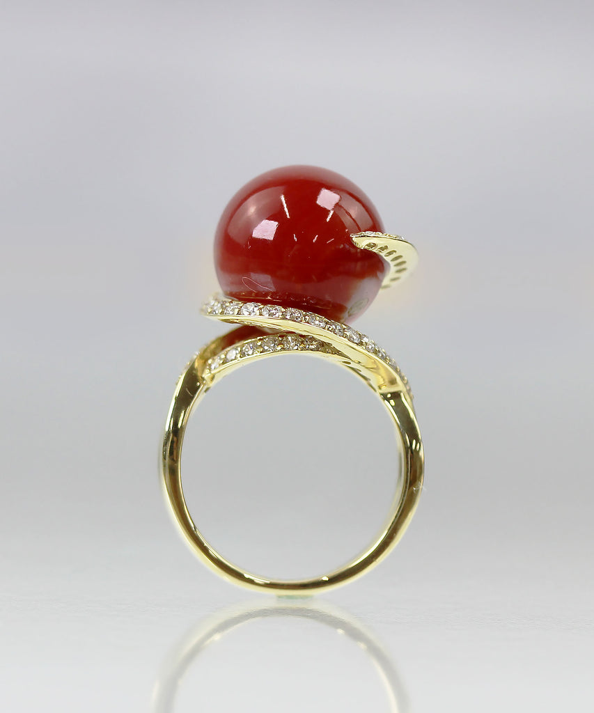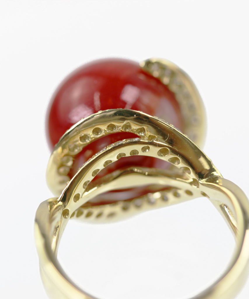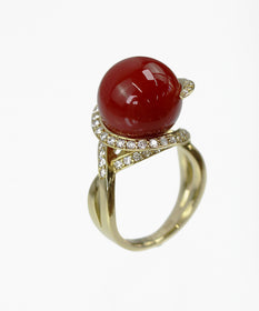 K18 珊瑚 ダイヤモンド リング