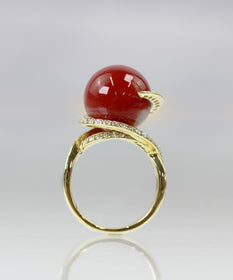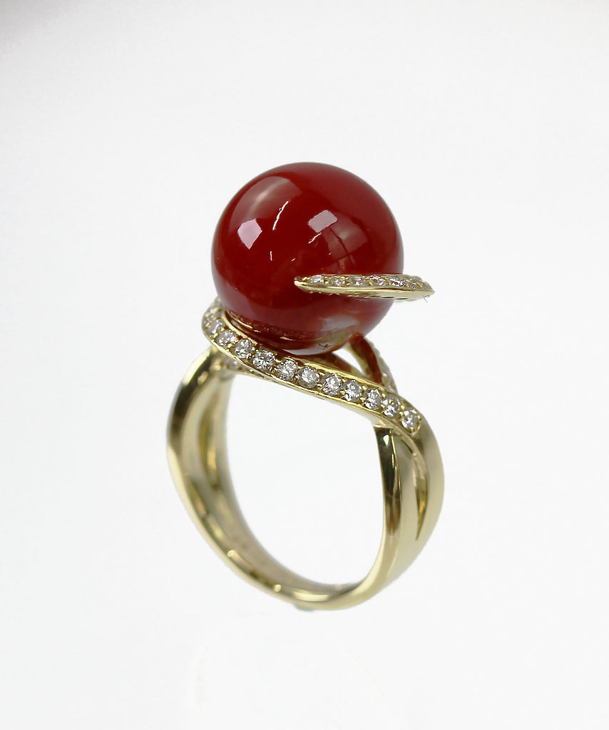 サンゴの丸玉をグルグルとダイヤモンドがを取り囲む惑星のような