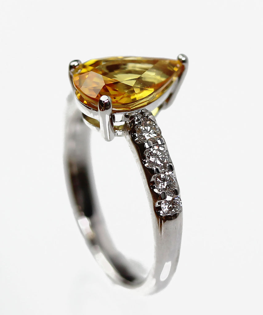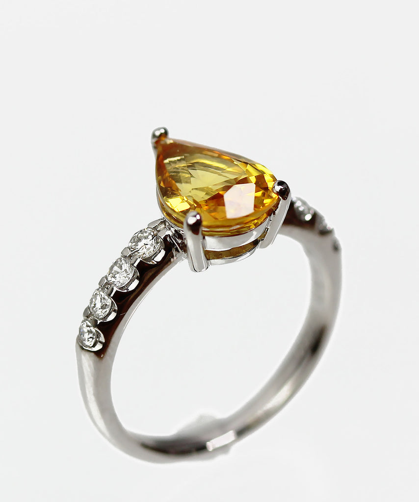 イエローサファイヤは、その鮮やかな黄色が特徴であり、その魅力的な輝きによって注目を浴びることで、ペアカットは、輝きを最大限に引き出すだけでなく、個性的で洗練されたデザインを生み出します。