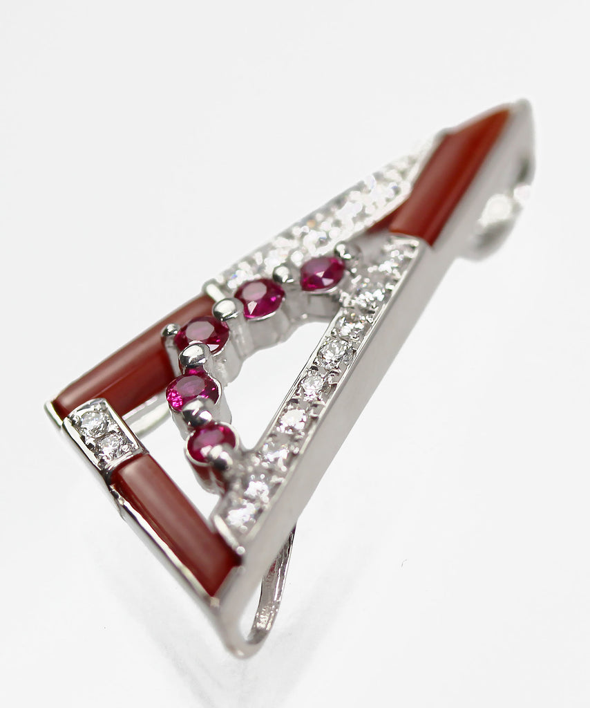 上品かつシックな雰囲気を醸し出す珊瑚と、華やかなルビーR0.24と輝くダイヤモンド0.23の絶妙なバランスが、ジュエリーに独自の魅力を与えています。
