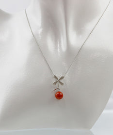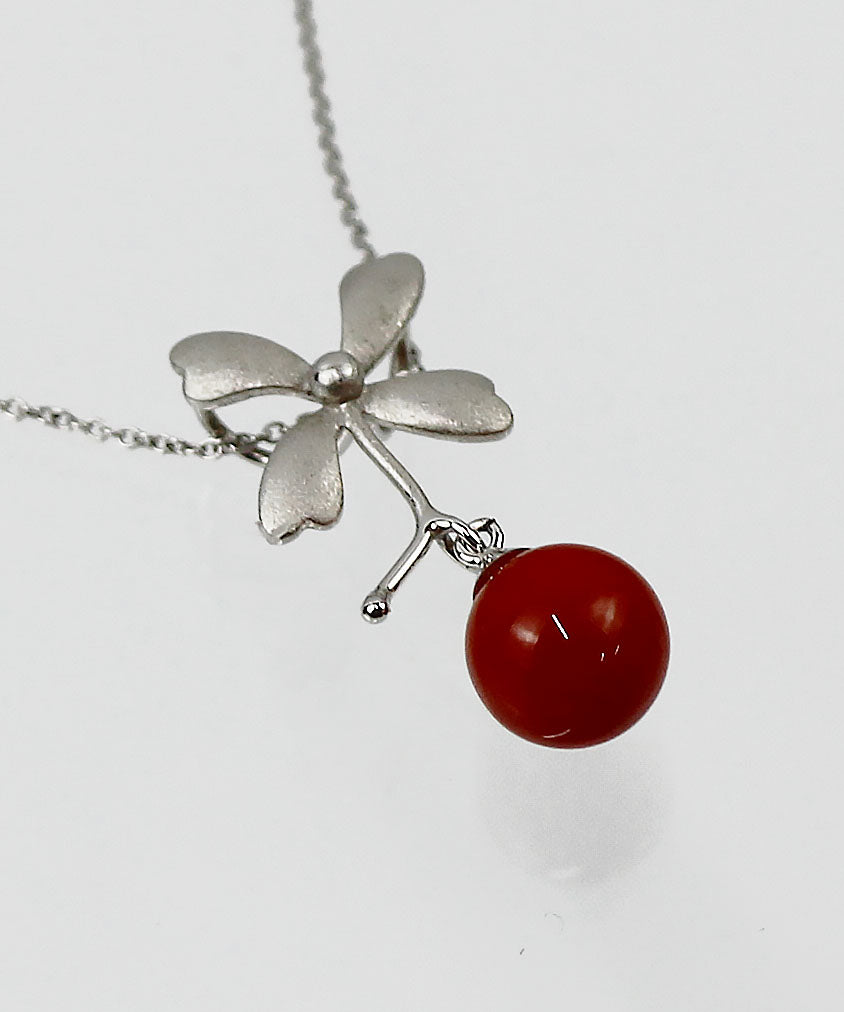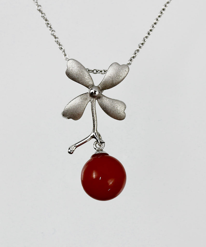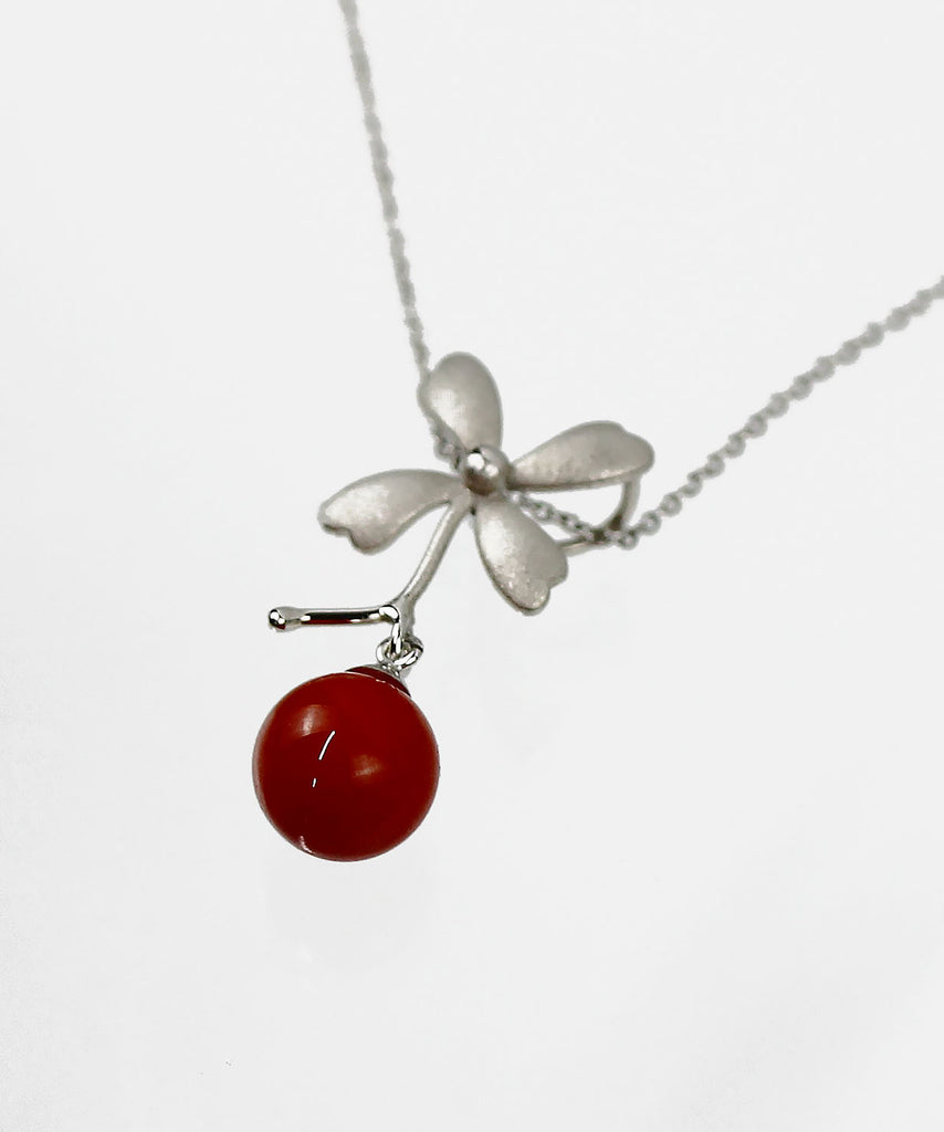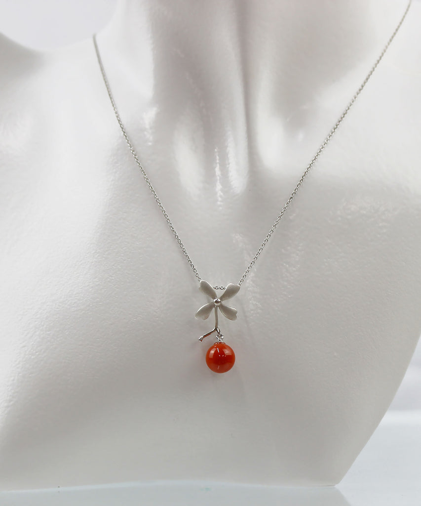 シルバー製のお花デザインの珊瑚ネックレスとなります