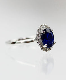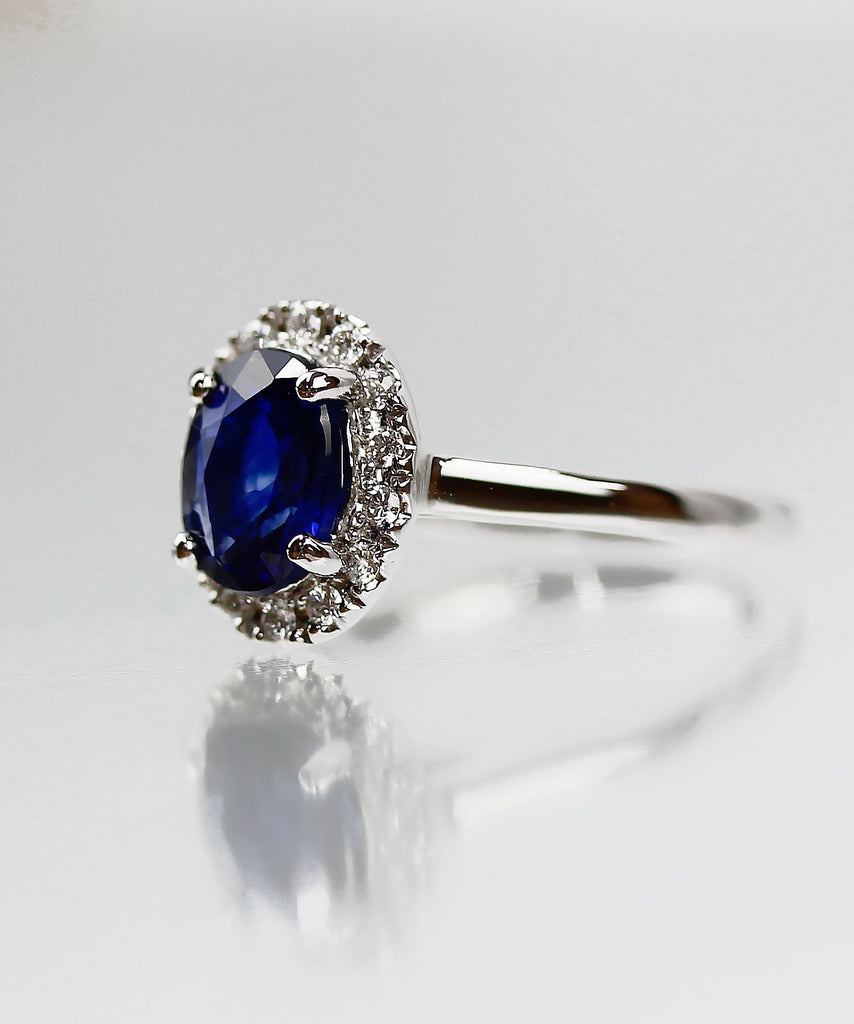 定番デザインと高品質なサファイアが贅沢に輝くリングです