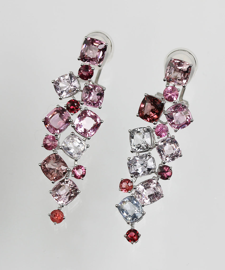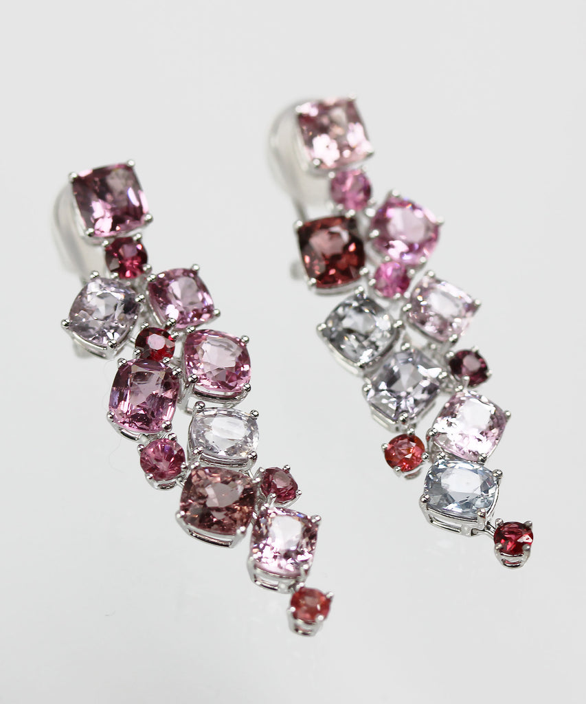 ディープで豊かな色合いのスピネルが、ピアスに独自の輝きをもたらします。シックで優雅な印象を与え、様々なスタイルに調和します。