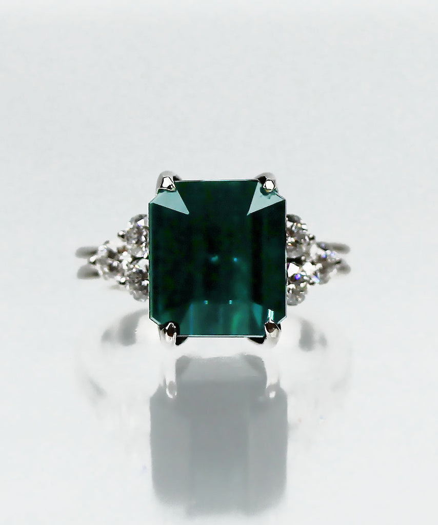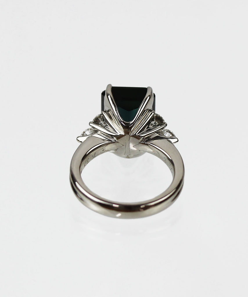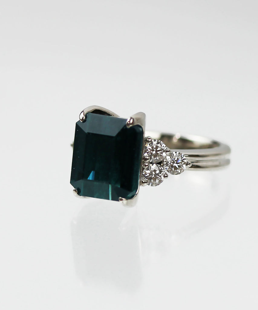 インディゴライトトルマリンは、知性と直感を高めると言われ、その神秘的な雰囲気が身に纏われた瞬間を演出します。