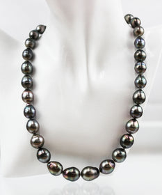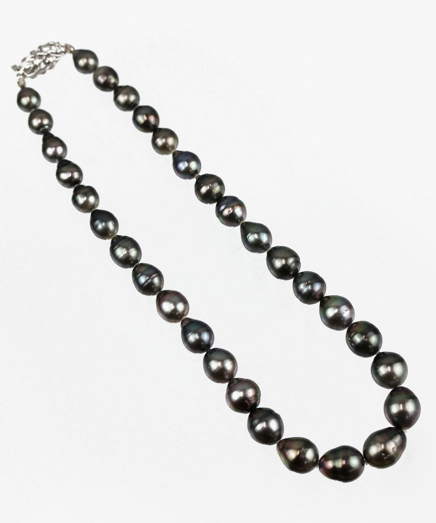10-18.4mmのバロック形の南洋黒蝶真珠ネックレス。