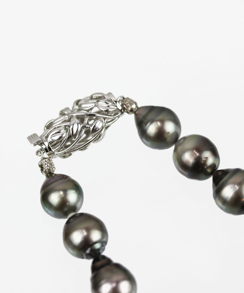 各真珠の個性を引き立てるデザインで、上質な南洋黒真珠を使用し、豊かな色と輝きが魅力。