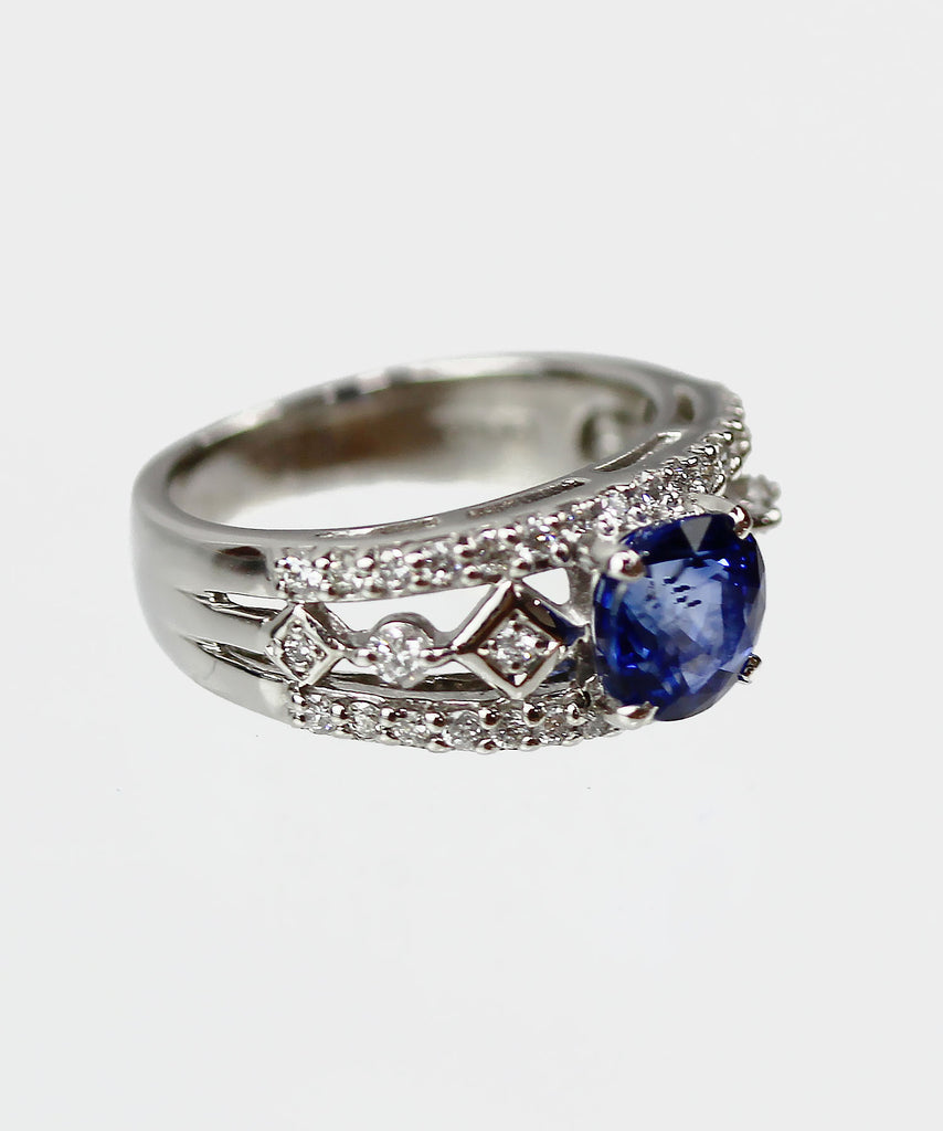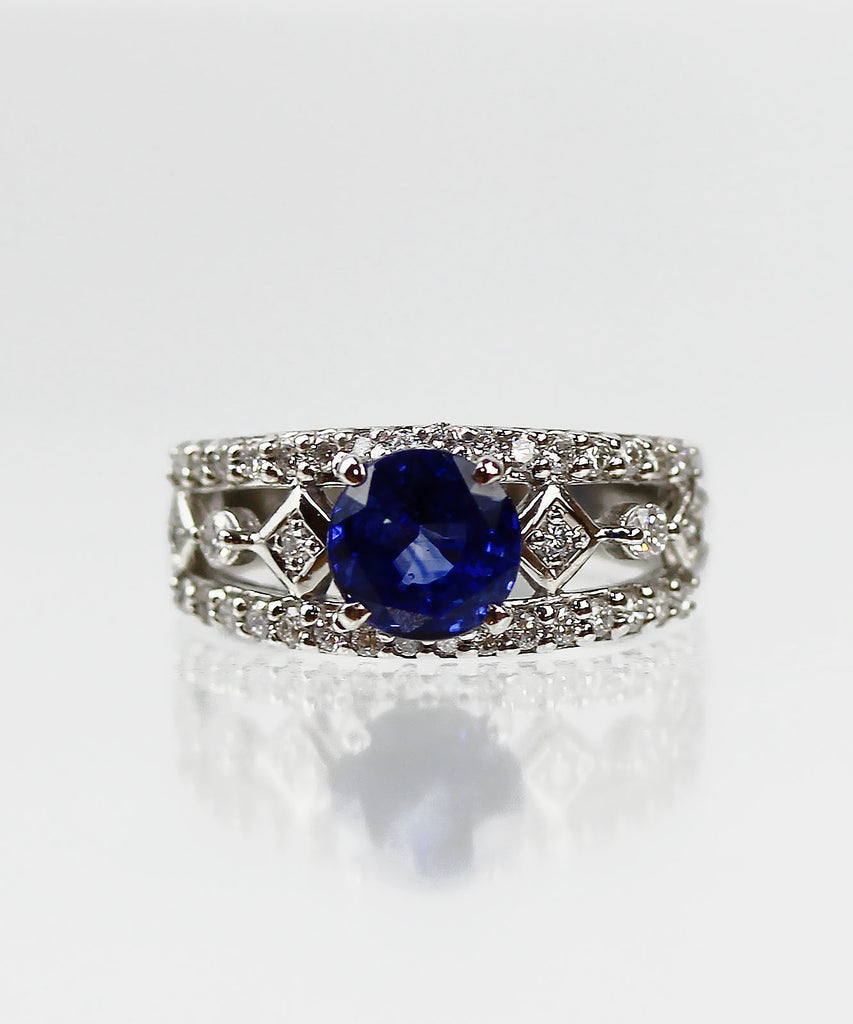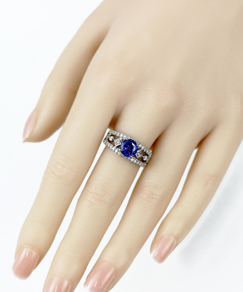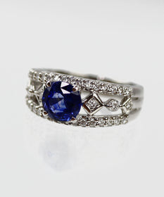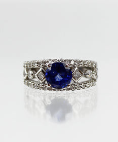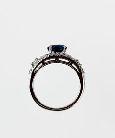 エレガントなデザインで深い青の輝き、高品質なサファイアが贅沢に輝くリングとなります。