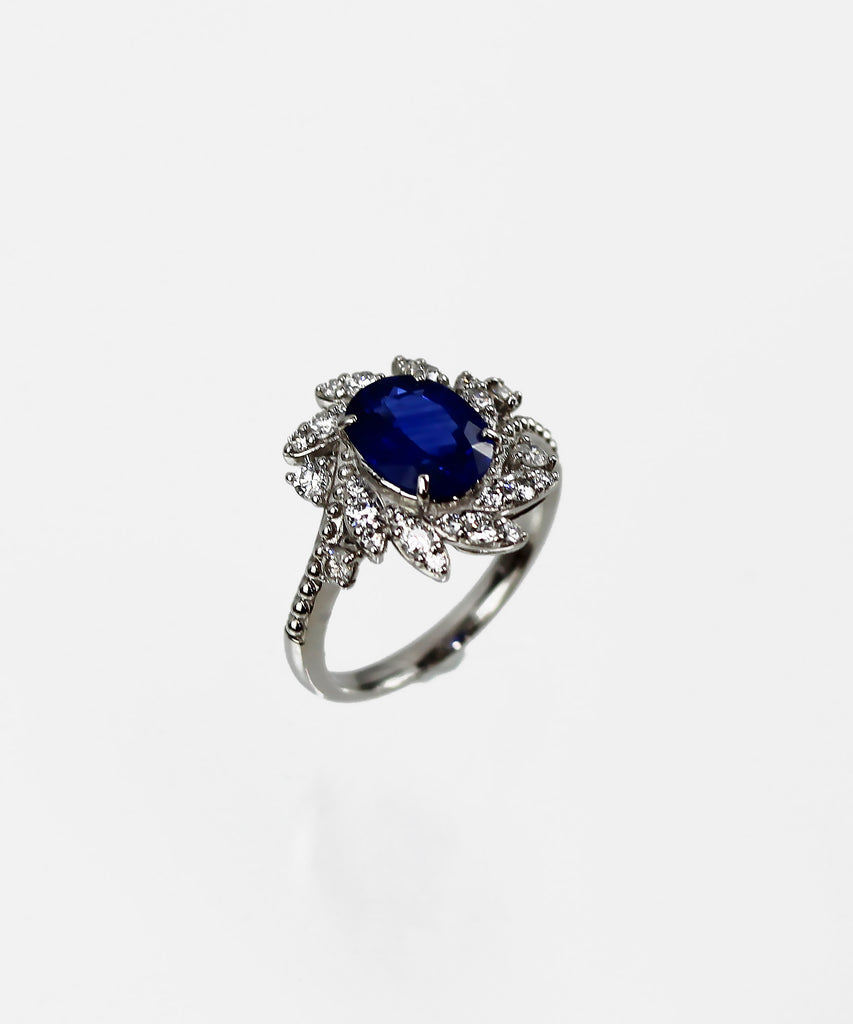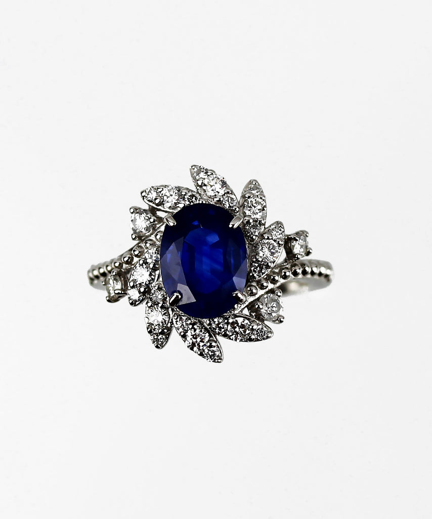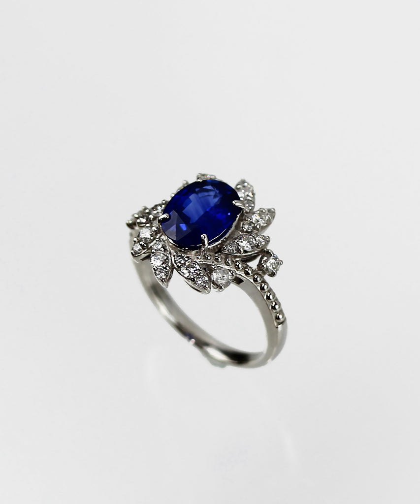 高級感たっぷりのデザインに2.43ctの大きいサファイヤを止めた素敵なデザインリングです。