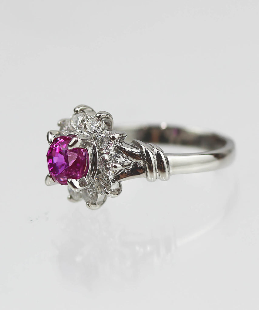 可愛いピンクカラーのサファイヤ、シンプルながらも美しいリング。