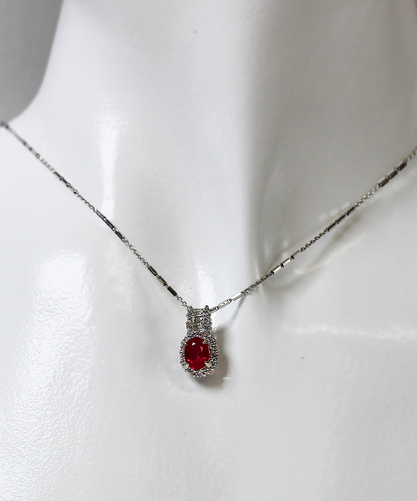 プラチナ/K18WG ルビー ダイヤモンド ネックレス