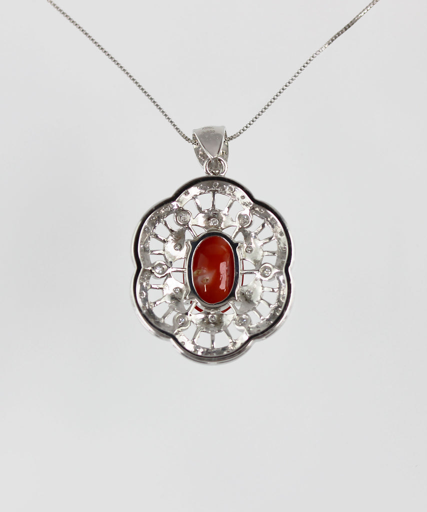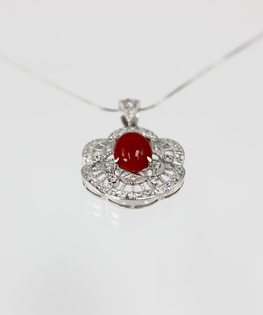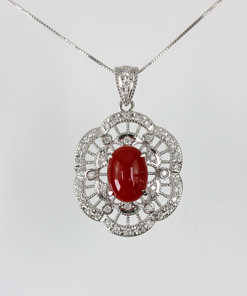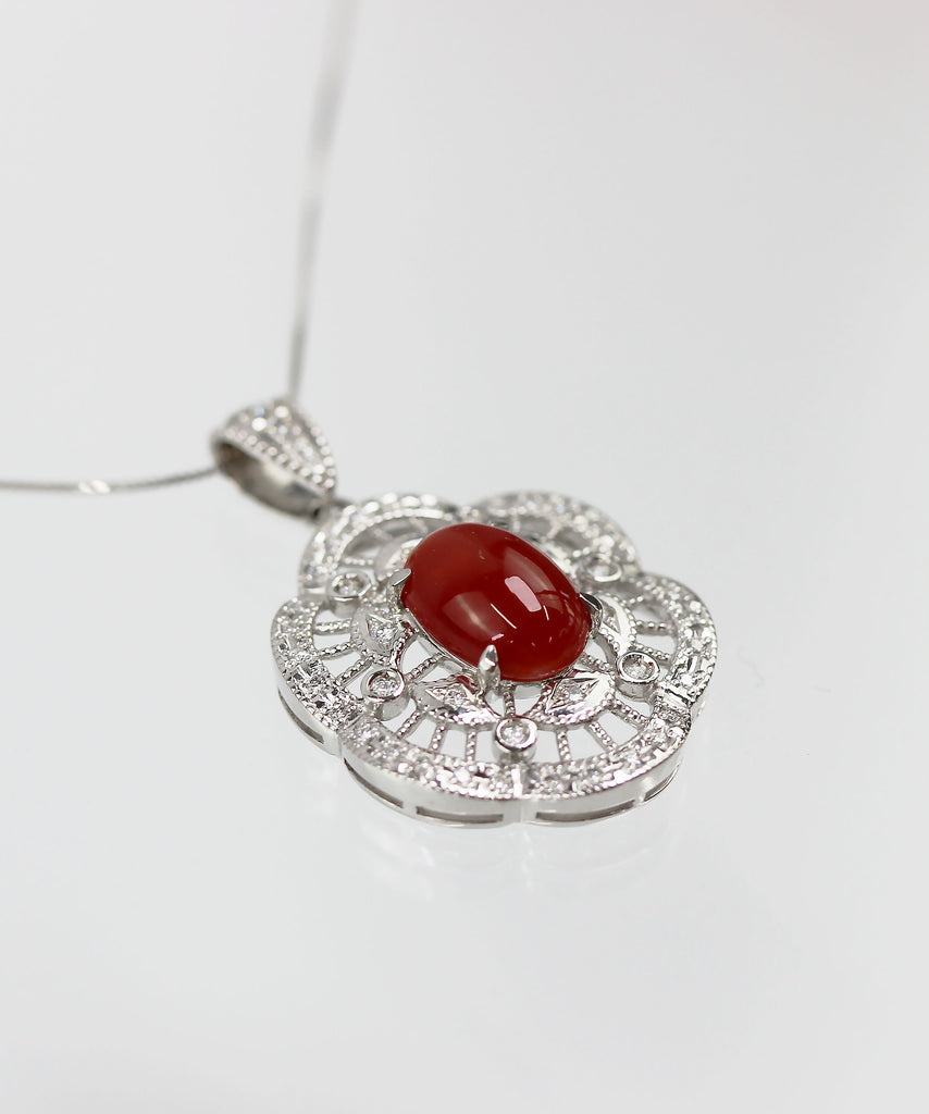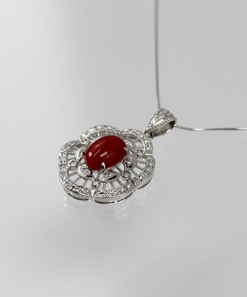 プラチナ/K18WG 珊瑚 ダイヤモンド ネックレス