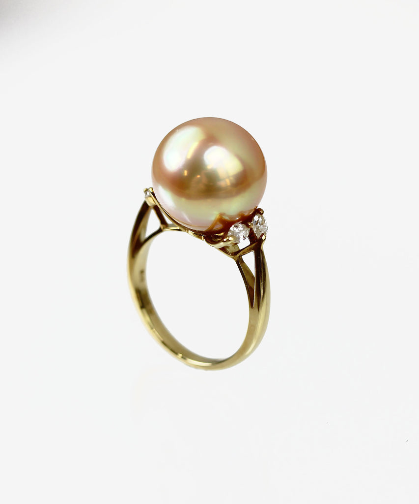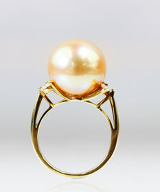 K18 茶金南洋珍珠13.3mm ダイヤモンドD0.26 重さ6.6g