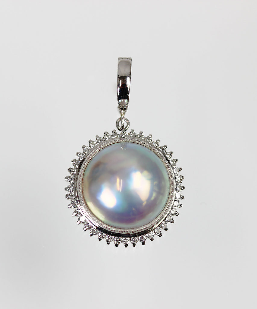 Pt900 マベパール15mm ダイヤモンドD0.40 重さ9.8g