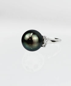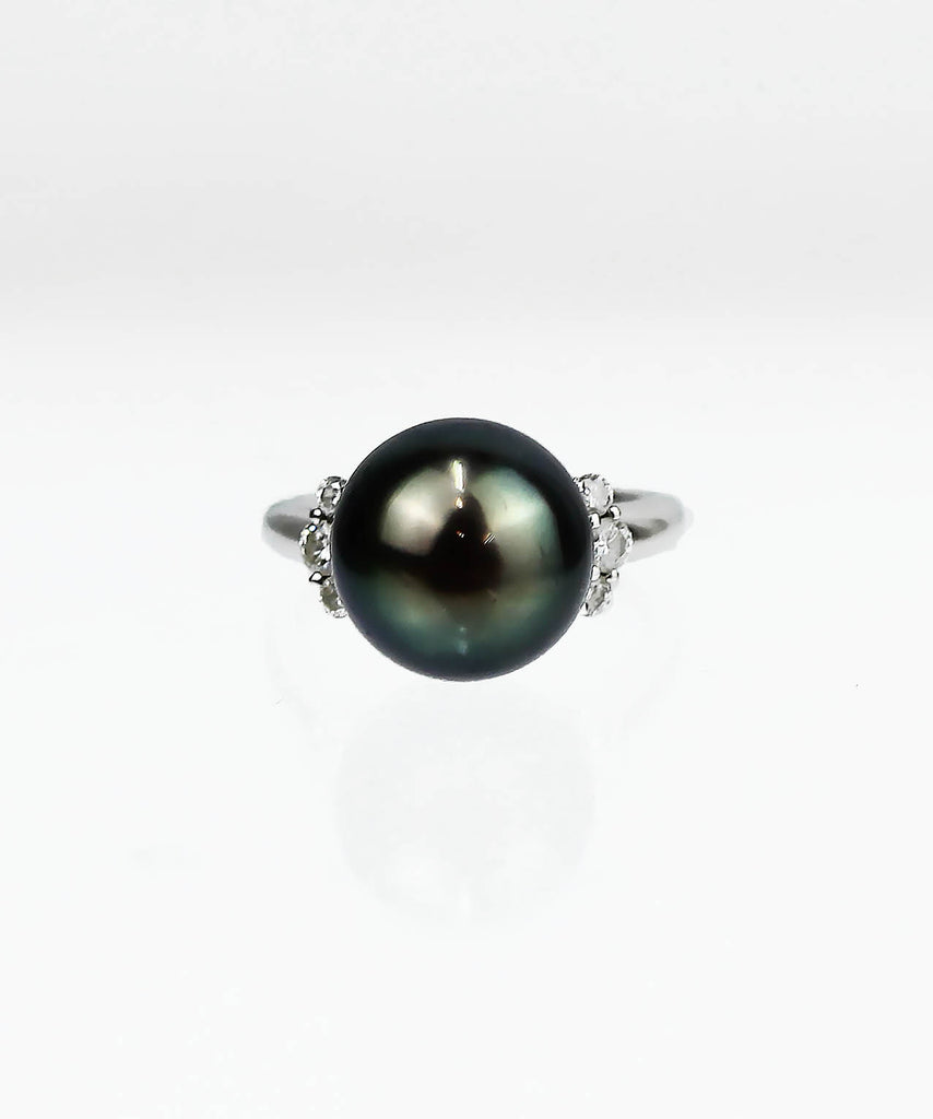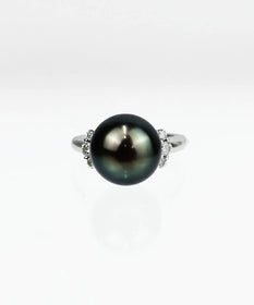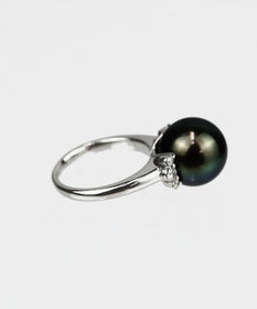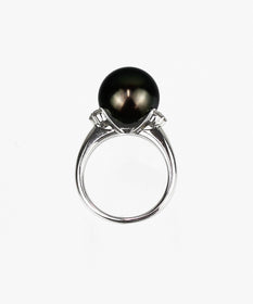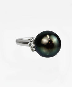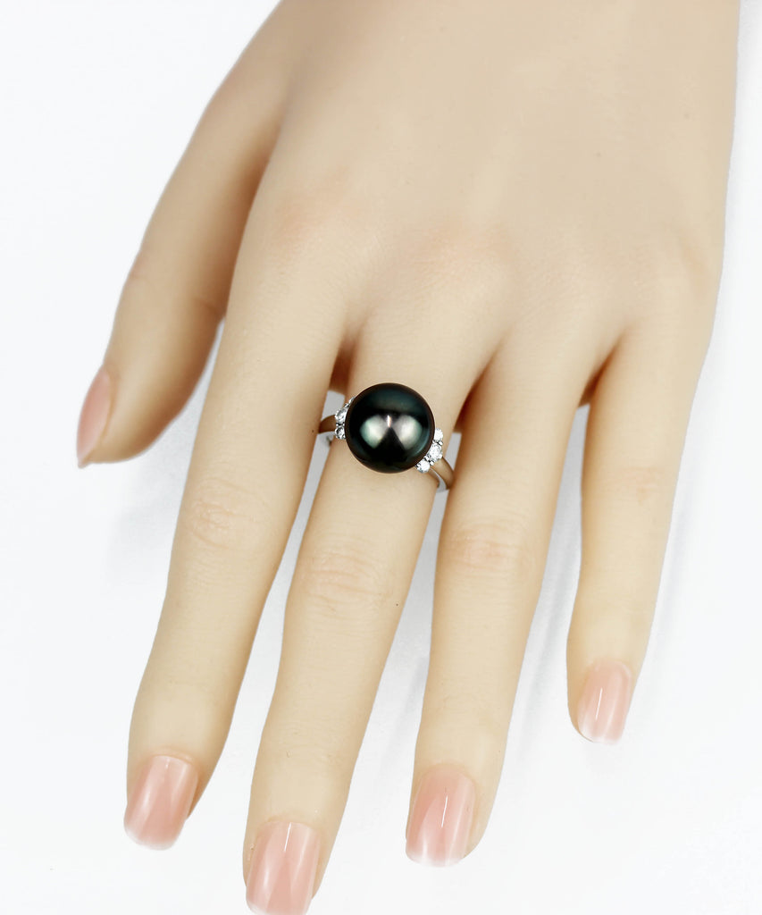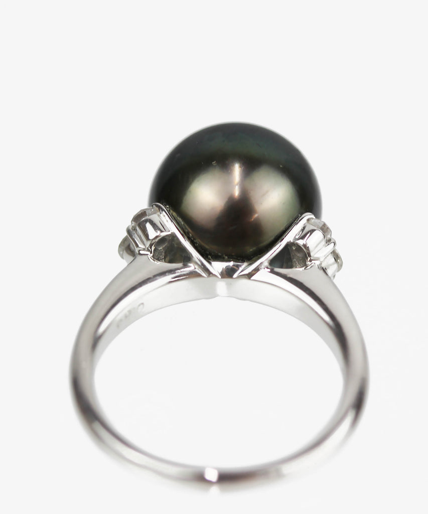 PT900 黒蝶真珠13mm ダイヤ0.33 リング